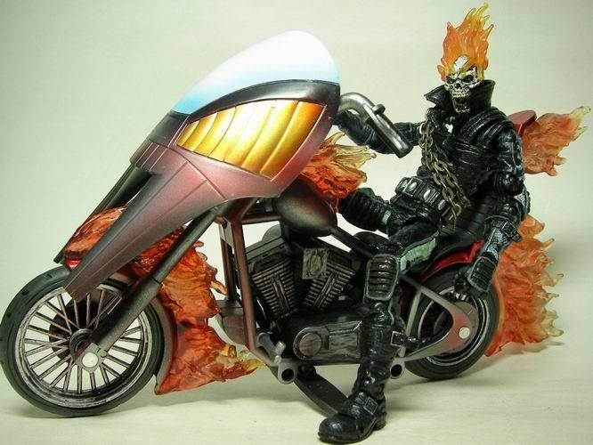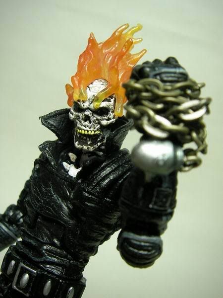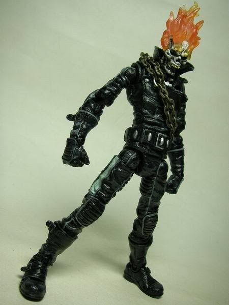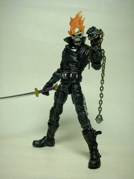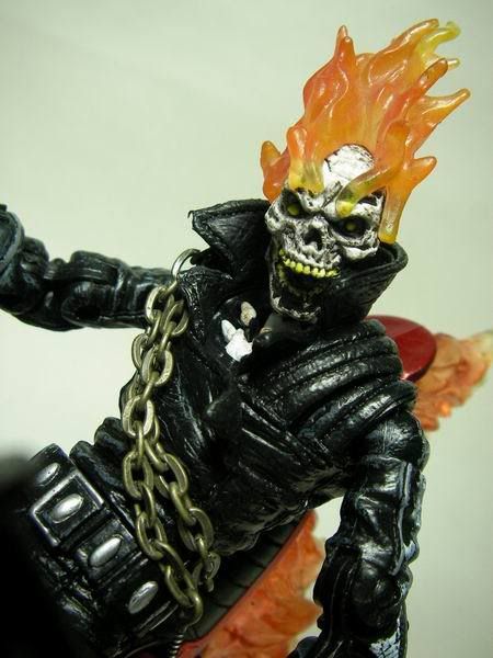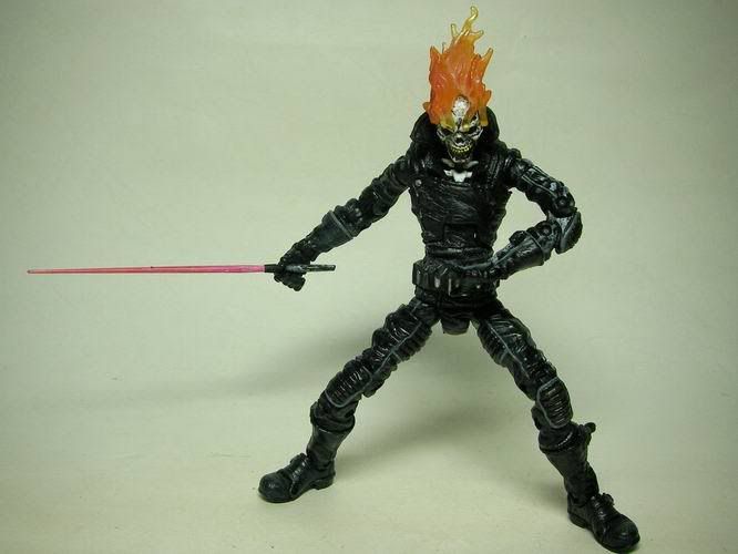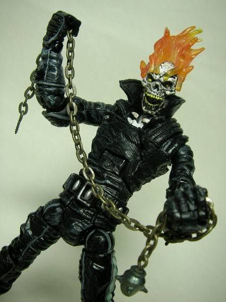 這是Toybiz出品"Marvel Legends"第7代的"Ghost Rider"(惡靈戰警) 身上的鎖鏈出自勇鬥盒玩 其實我才是傳說中的超級賽亞人........... 這隻有個好玩的機關,只要嘴巴閉起來眼珠就會縮進去........ 看,嘴巴一閉眼珠就不見了!! 只要給他裝個爆炸頭就變布魯克了.......XD 身為騎士一定要會的騎士踢!!! 超經典的ending pose是我童年的美好回憶~(背景應該配爆炸畫面才對..........)...